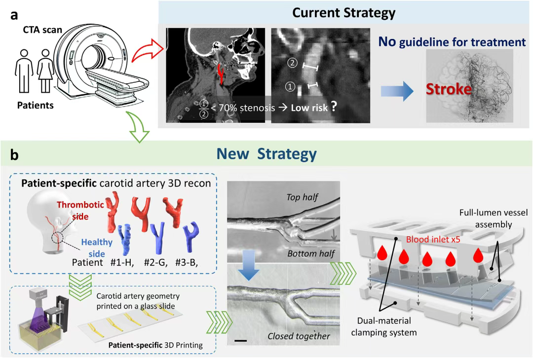 该团队依托摩方精密面投影微立体光刻(PμSL)技术,成功开发出超快速、自动化、患者特异性的血管芯片制造平台。该项研究将传统需要10小时以上的制造过程缩短至2小时以内,在制造精度、可靠性和应用范围方面实现显著突破。