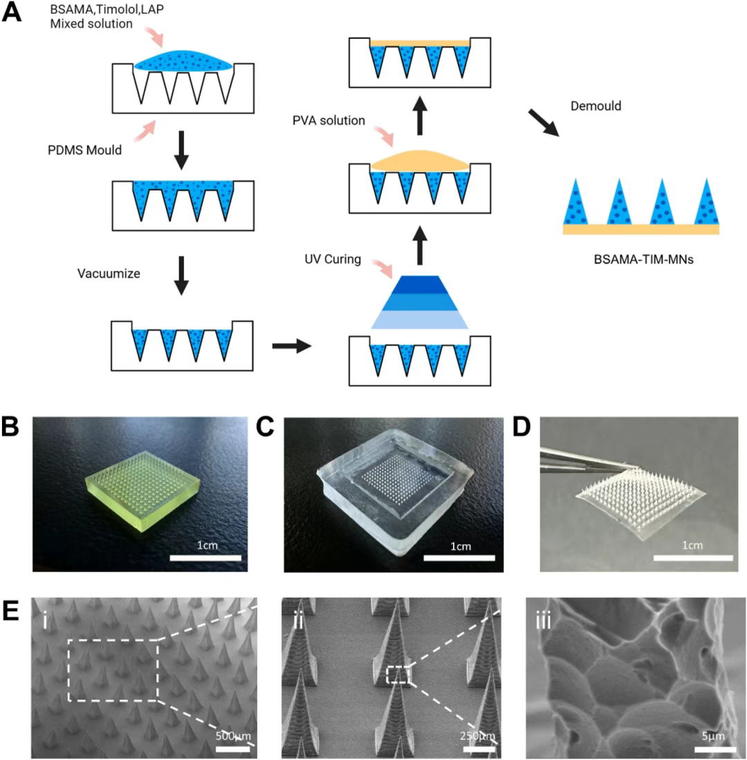 研究团队开发了牛血清白蛋白甲基丙烯酸酯水凝胶微针系统,结合微针的透皮优势与水凝胶的缓释特性,为 IH 治疗提供了新策略。
