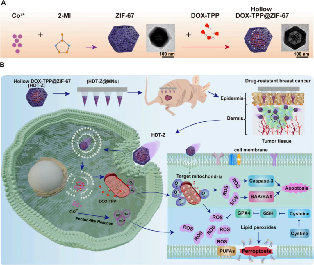 研究论文提出一种创新策略——基于线粒体靶向微针(HDT-Z@MNs)系统,精准激活癌细胞“死亡开关",打破乳腺癌阿霉素耐药困局。