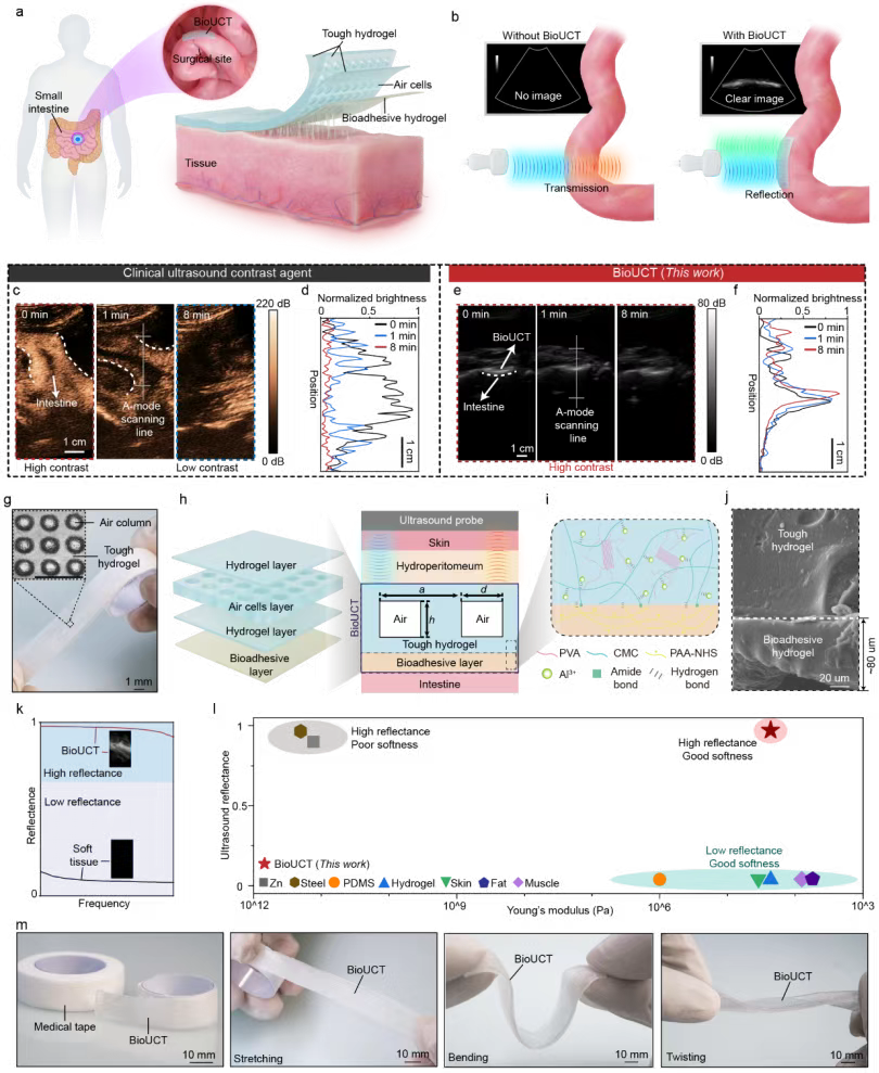 它能像创可贴一样牢固贴合在肠道表面,通过内部设计的周期性微气囊结构,将超声波反射率提升至90%以上,使肠道在超声图像中亮度显著提高40dB(相当于回波信号幅度提升约1万倍)。