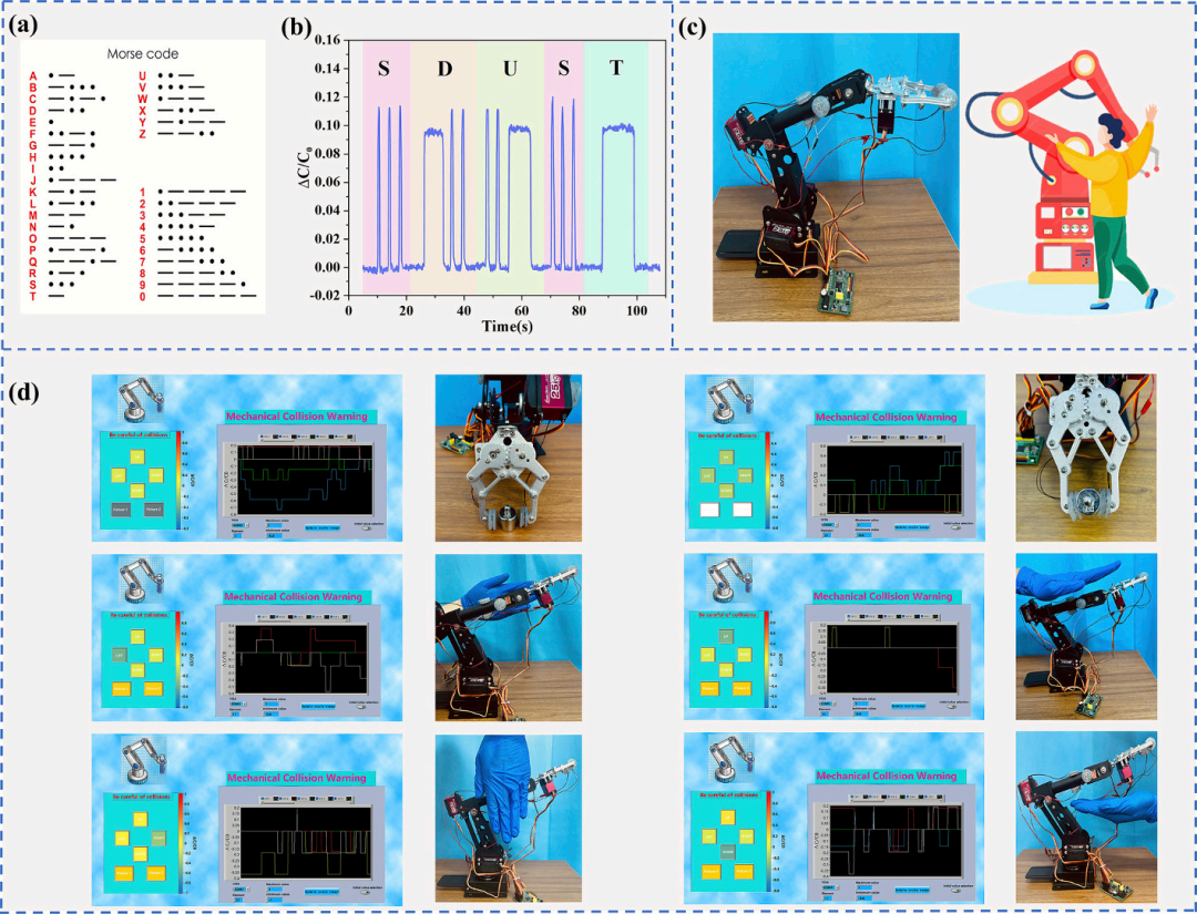 图6. 传感器在莫尔斯电码加密传输与人机交互障碍物感知中的应用。